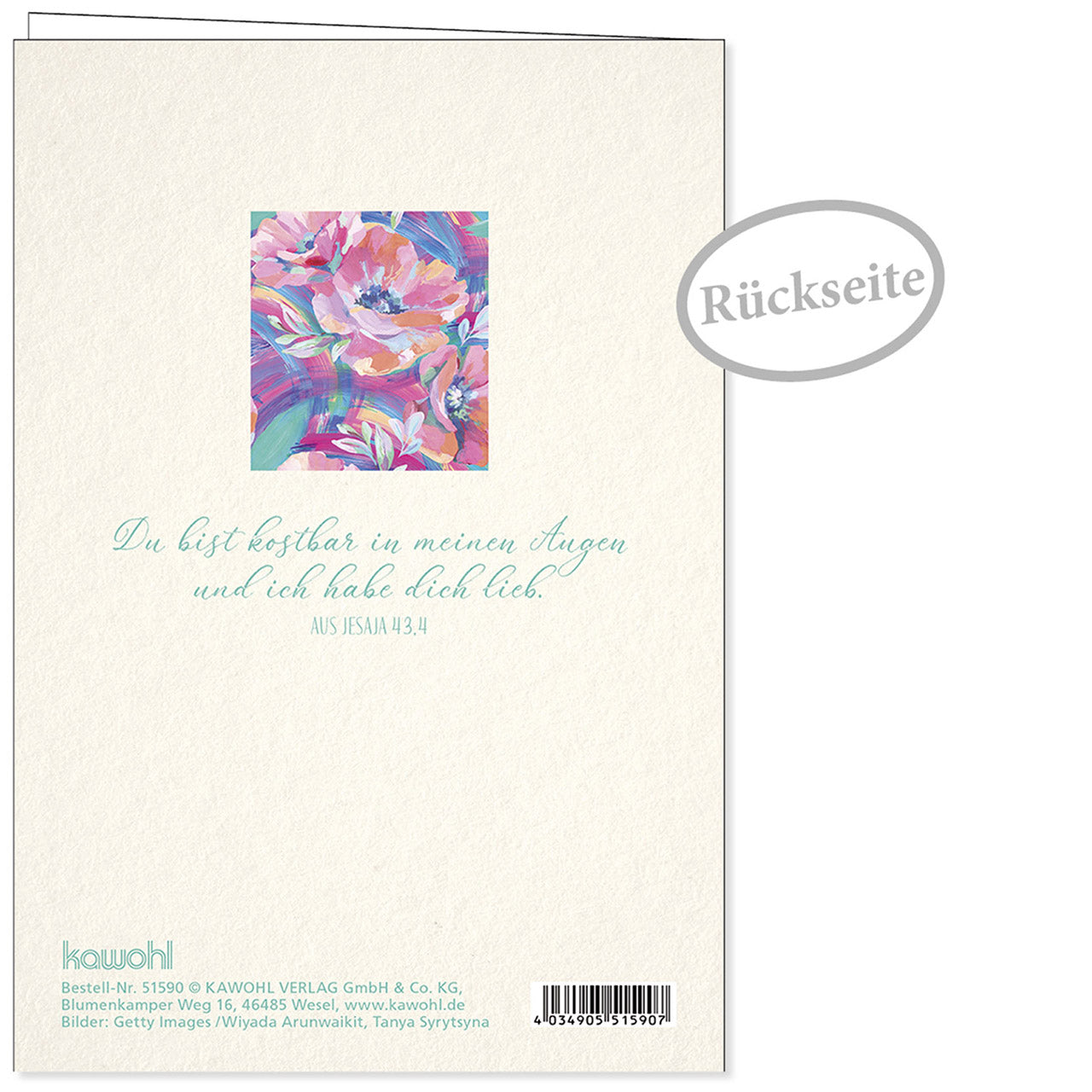 Mit dieser schönen Geburtstagskarte überreichen Sie Glückwünsche und persönliche Worte, verbunden mit einer guten Botschaft, in liebevoller Gestaltung.