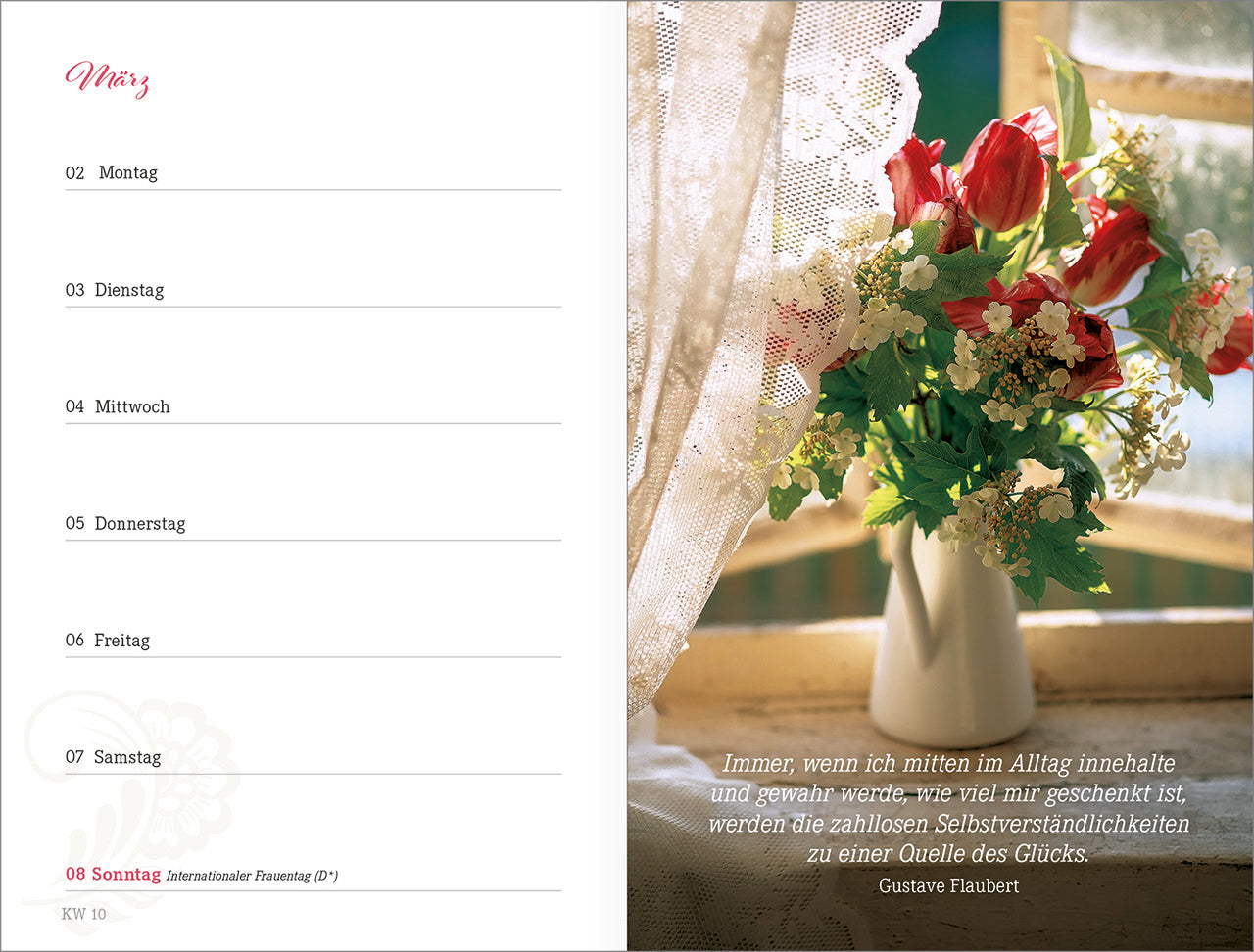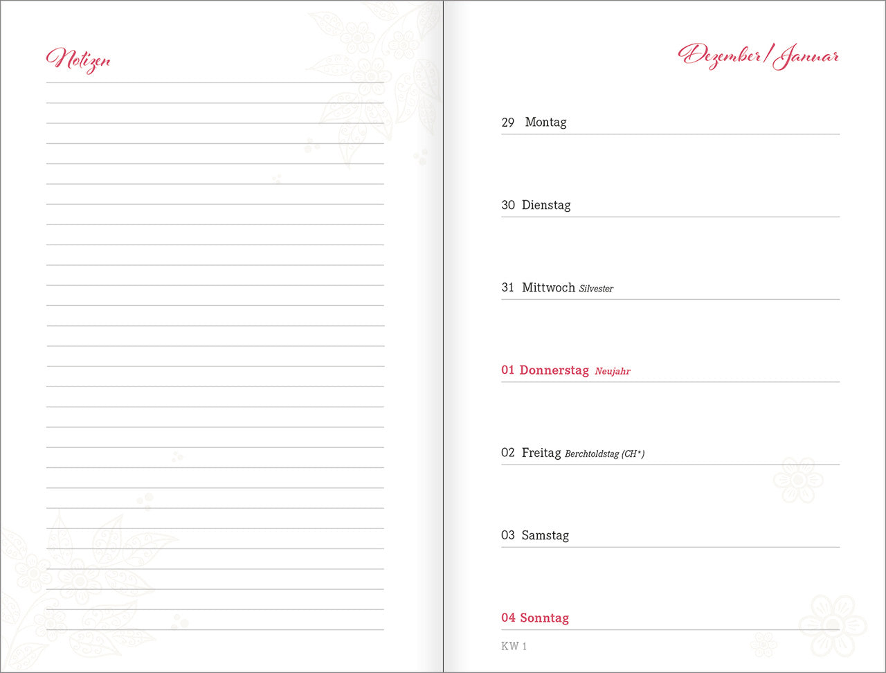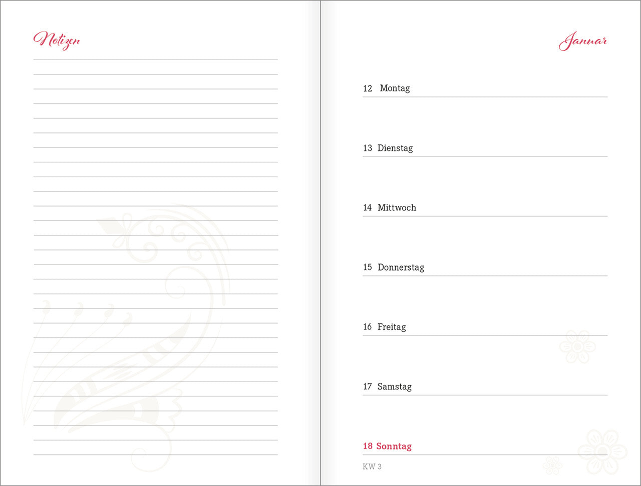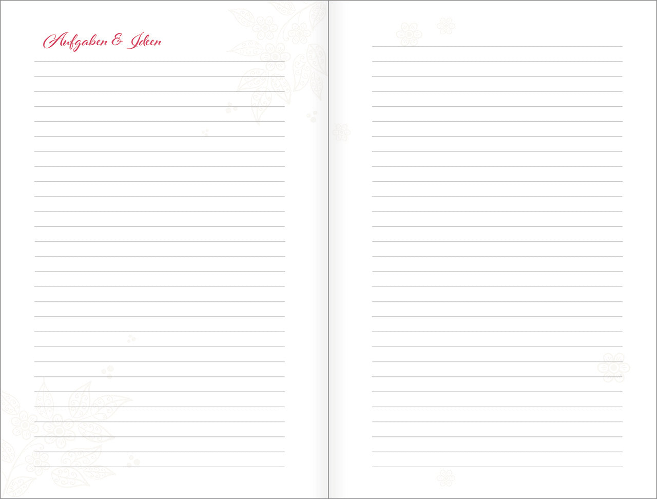 Sie durchziehen den hübschen Taschenkalender, der mit einem Wochenkalendarium und vielen praktischen Listen das Leben übersichtlicher macht.