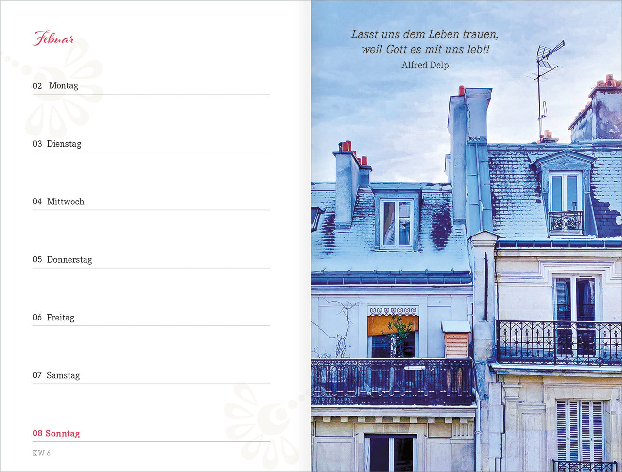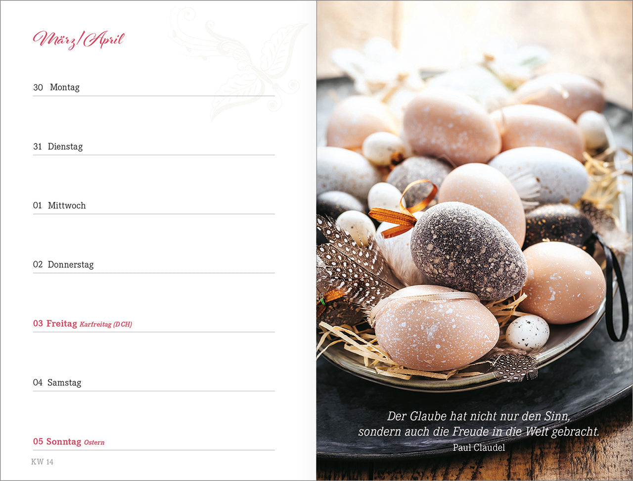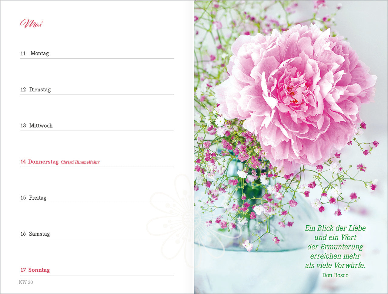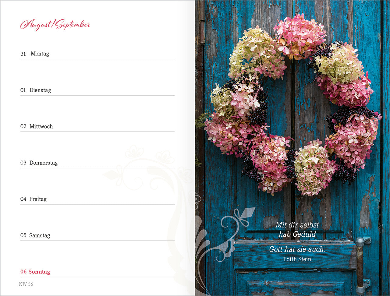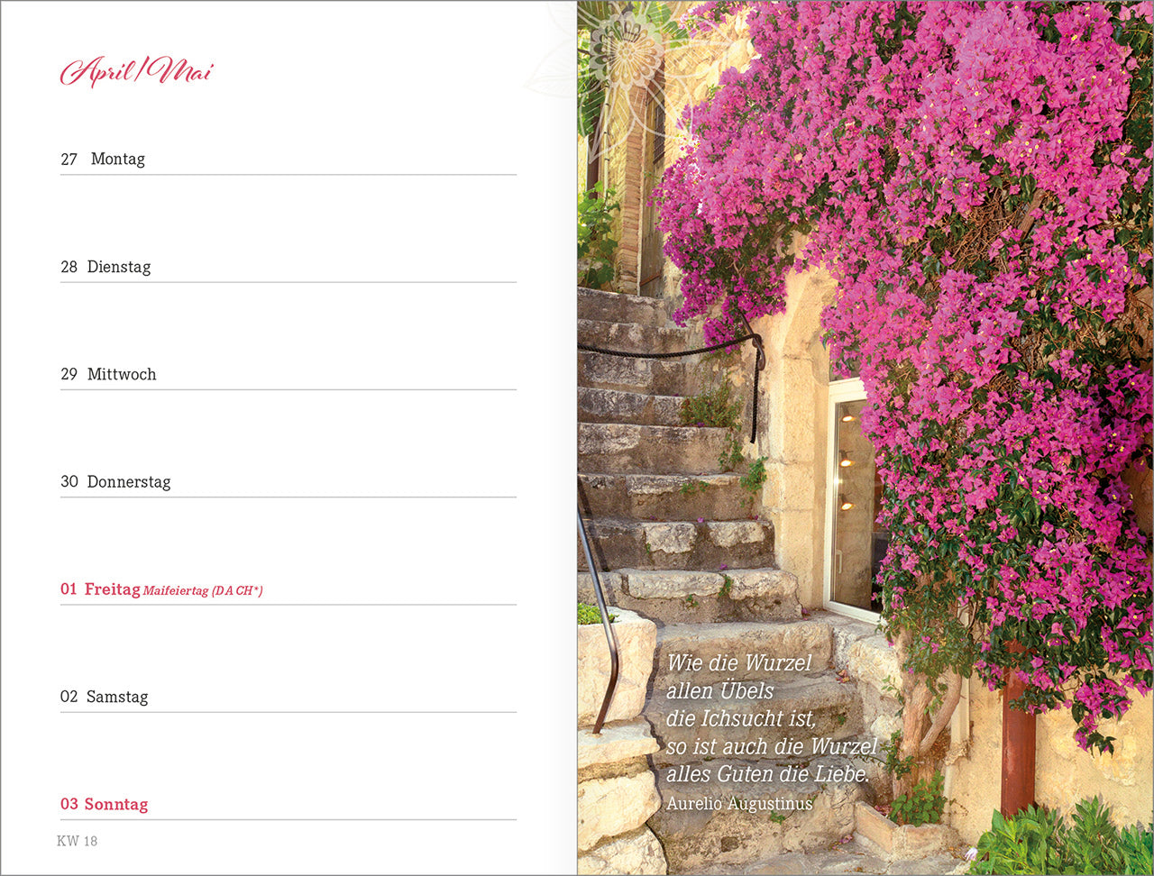 Sie durchziehen den hübschen Taschenkalender, der mit einem Wochenkalendarium und vielen praktischen Listen das Leben übersichtlicher macht.