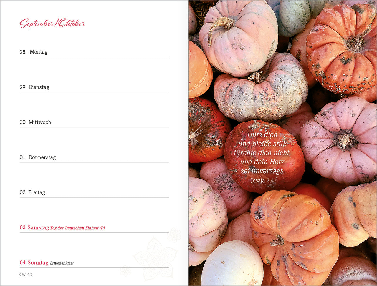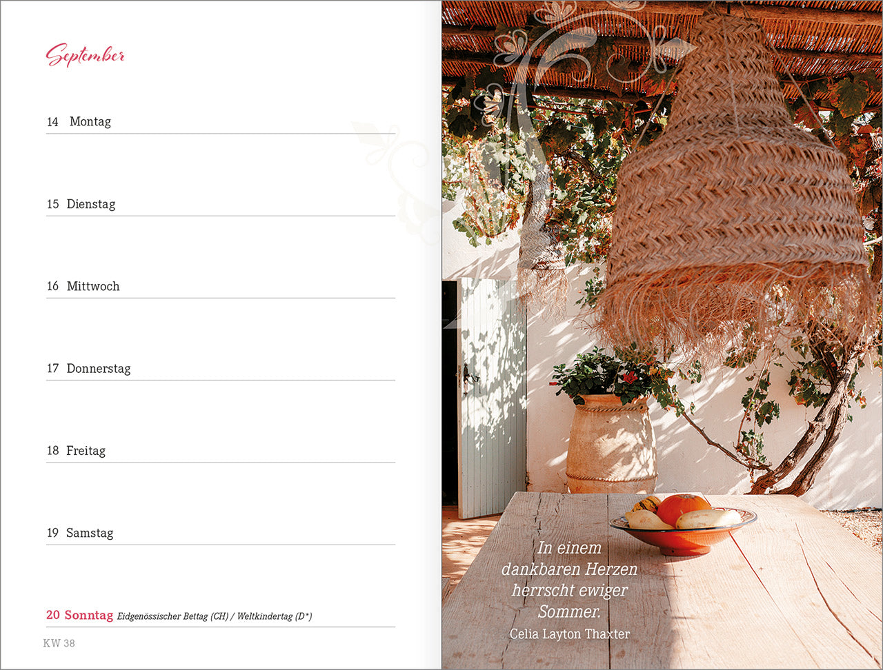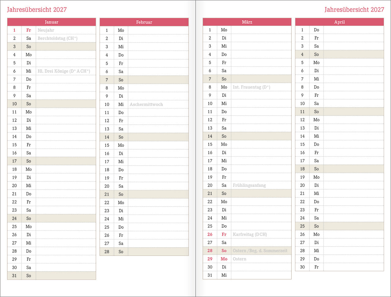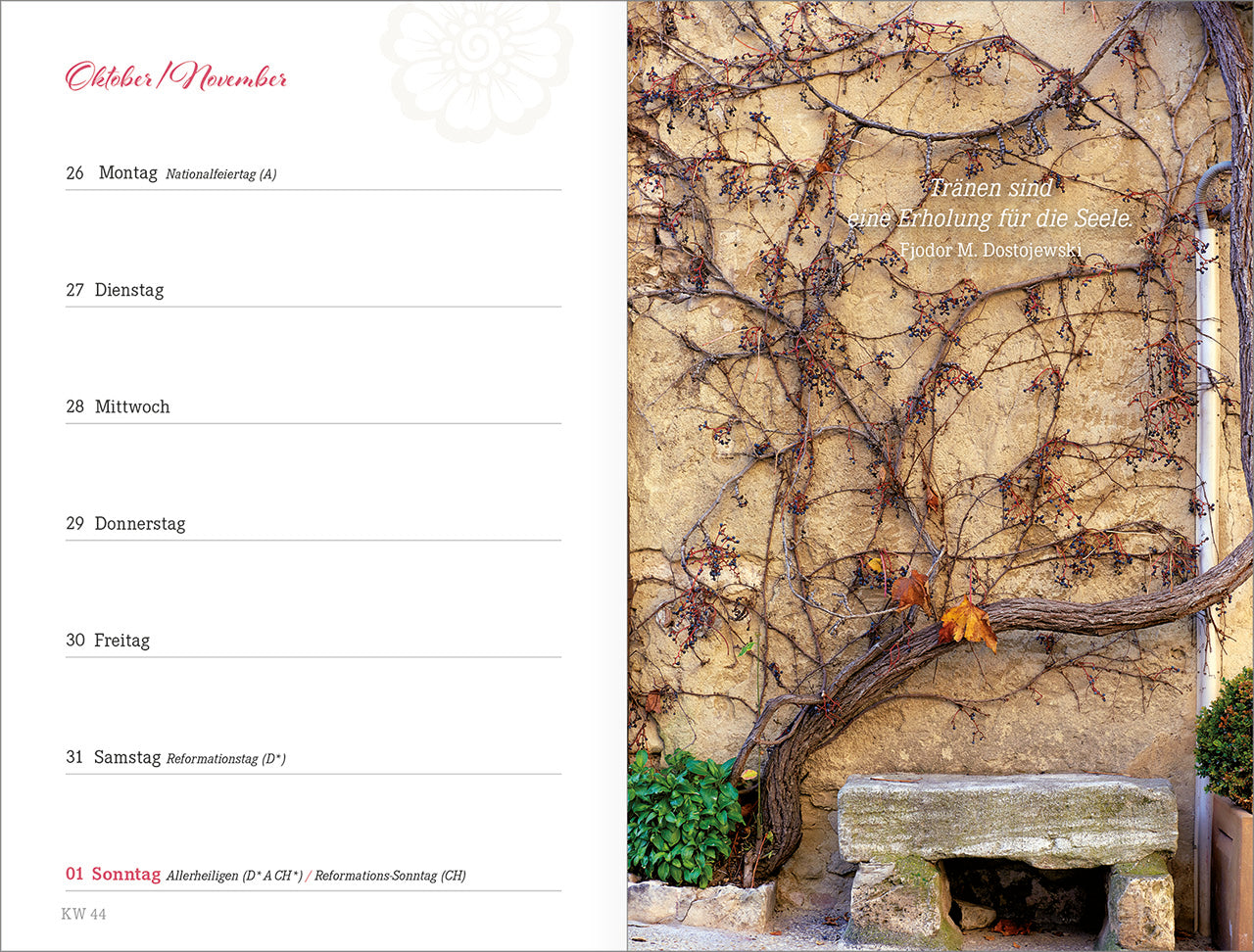 Sie durchziehen den hübschen Taschenkalender, der mit einem Wochenkalendarium und vielen praktischen Listen das Leben übersichtlicher macht.
