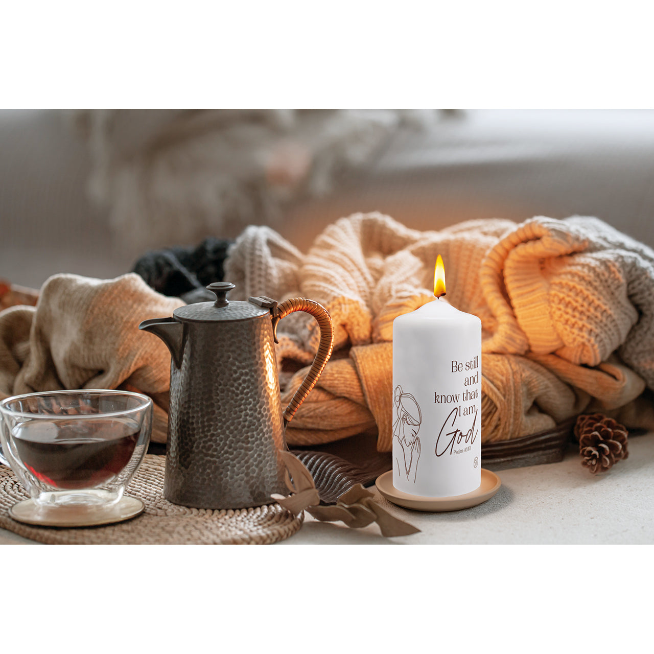 Modern gestaltete Kerze mit biblischer Zusage - ästhetisch, hoffnungsvoll und glaubensstärkend