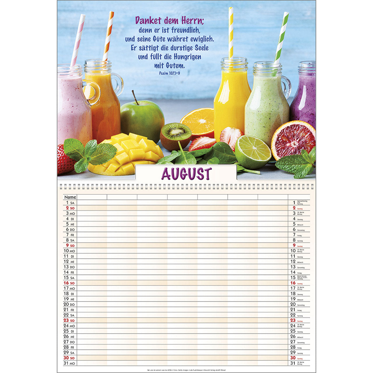 Spritziger XXL Familien-Terminer - mit 7 Spalten
