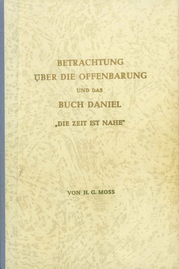 Dieses Buch ist im Englischen unter dem Titel: "Notes on the book of Revelation by H. G. Moss" erschienen. Der Untertitel: "Die Zeit ist nahe" wurde ihm für die Übersetzung ins Deutsche gegeben.