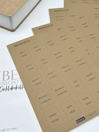 - 4 Stickerbögen mit allen Bücher der Bibel (ohne Apokryphen)