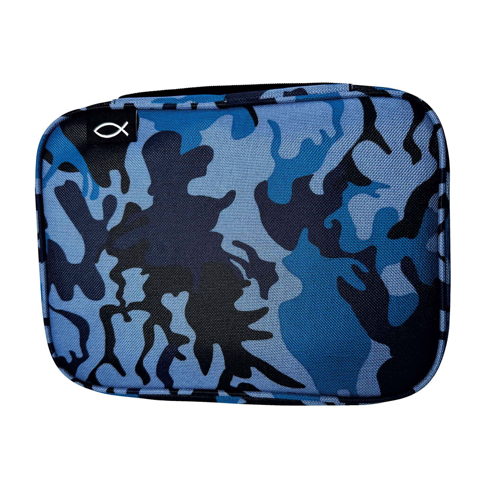 Bibeltasche Ichthys XL (blau) - Nylon mit Tragegriff, Leseband, Stiftschllaufe