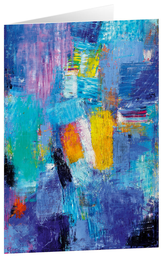 Blaues Farbspiel - Kunstfaltkarten ohne Text (5er Set)