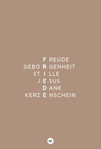 Dekorativ und ermutigend: Nicht nur der Barbarazweig, auch Worte können in der Adventszeit blühen. 24 solcher Worte hat Jeannette Mokosch mit der Kalligrafie-Feder zu Papier gebracht. Auf liebevoll gestalteten Seiten begleiten sie in diesem Aufstellbuch durch den Advent. Anschließend können sie ganz einfach in Weihnachtskarten verwandelt werden und weiter Freude bringen.