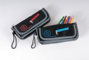 Mäppchen „Copyright by God“, Schlamper-Etui ca. 20 x 8,5 cm, Zusatzfach mit Reißverschluss, Stiftschlaufen Aufdruck blau "