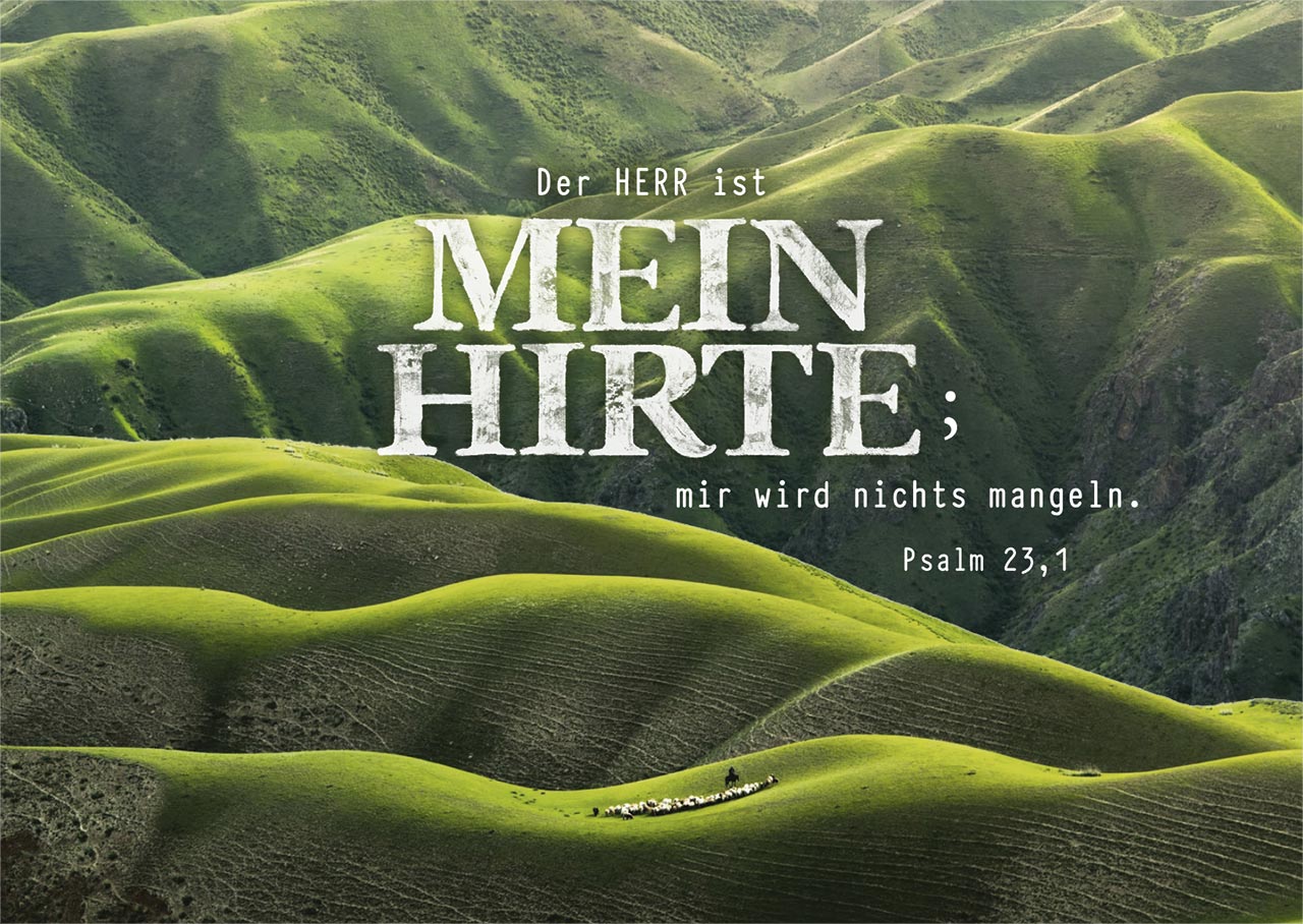 Der Vers aus Psalm 23,1: "Der HERR ist mein Hirte; mir wird nichts mangeln." vermittelt eine ermutigende Botschaft, die Zuversicht und Trost spendet. Diese Postkarte eignet sich für verschiedene Anlässe und ist ideal, um persönliche Grüße mit einer christlichen Botschaft zu versehen.
