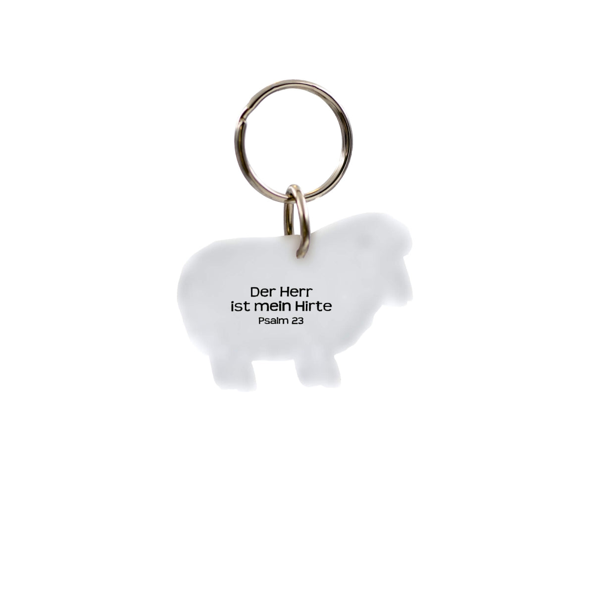 Bedruckt ist das Schäfchen auf der Rückseite mit dem beliebtem Vers "Der Herr ist mein Hirte, Psalm 23". Ein schöner Vers als ständiger Begleiter für jeden Tag.