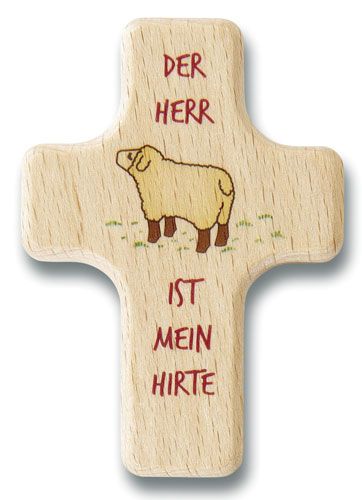 Der Herr ist mein Hirte - Handkreuz aus Holz (4 x 6 cm)