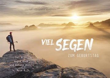 Der Text "Viel Segen zum Geburtstag" und der Bibelvers aus 4. Mose 6,24: "Der HERR segne dich und behüte dich!" machen diese Karte zu einer besonderen Botschaft der Ermutigung und des Schutzes.