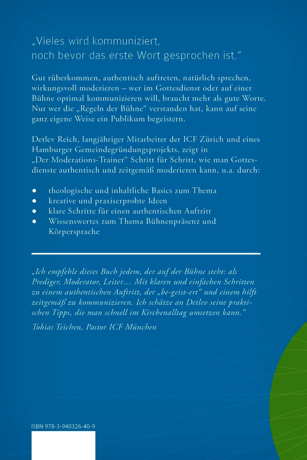Gut rüberkommen, authentisch auftreten, natürlich sprechen, wirkungsvoll moderieren - wer im Gottesdienst oder auf einer Bühne optimal kommunizieren will, braucht mehr als gute Worte. Der "Moderations-Trainer" zeigt Schritt für Schritt, wie man Gottedienste authentisch und zeitgemäß moderieren kann., u.a. durch: theologische und inhaltliche Basics zum Thema, kreative und praxiserprobte Ideen, klare Schritte für einen authentischen Auftritt, Wissenswertes zum Thema Bühnenpräsenz und Körpersprache.