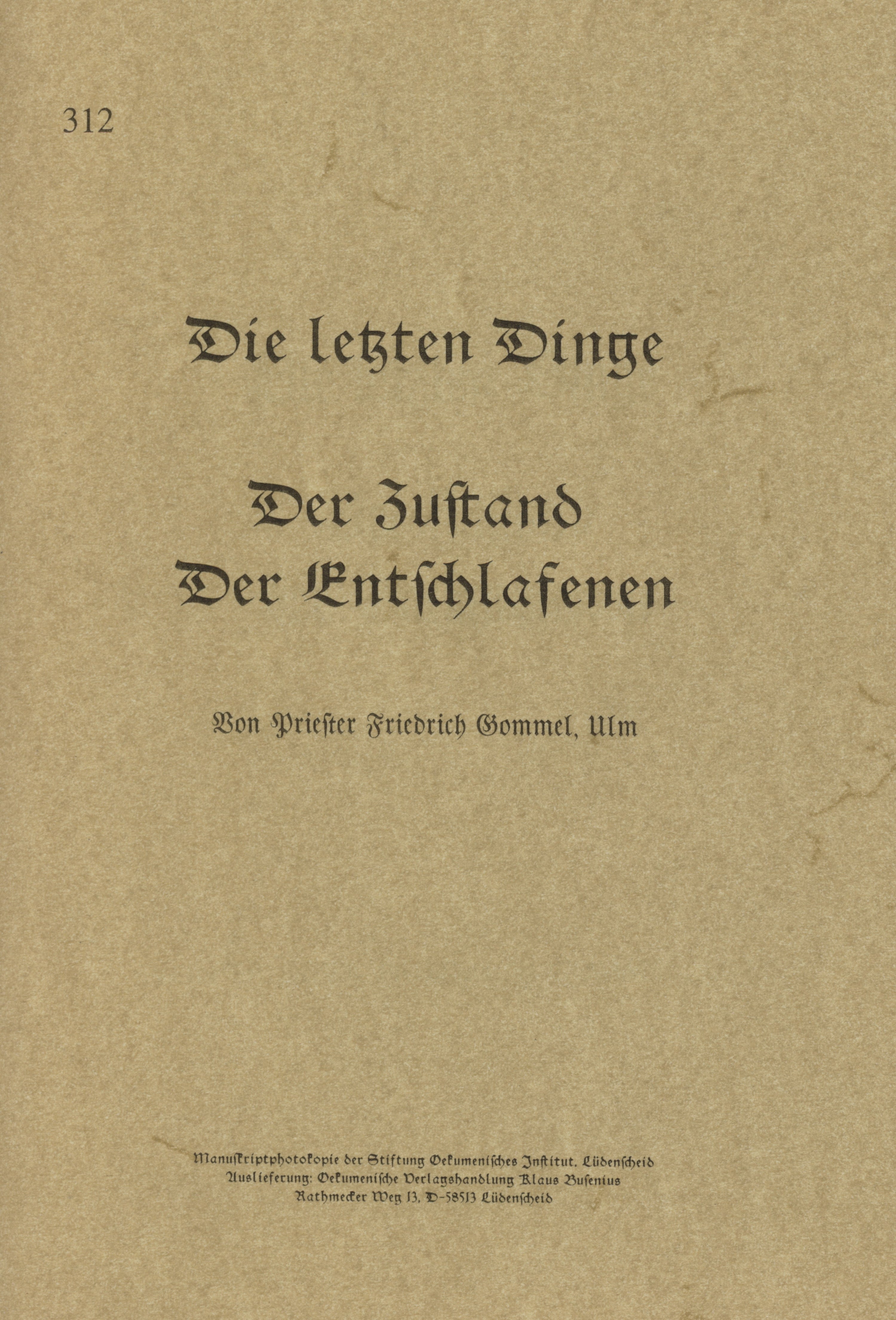 Die letzten Dinge - Der Zustand der Entschlafenen