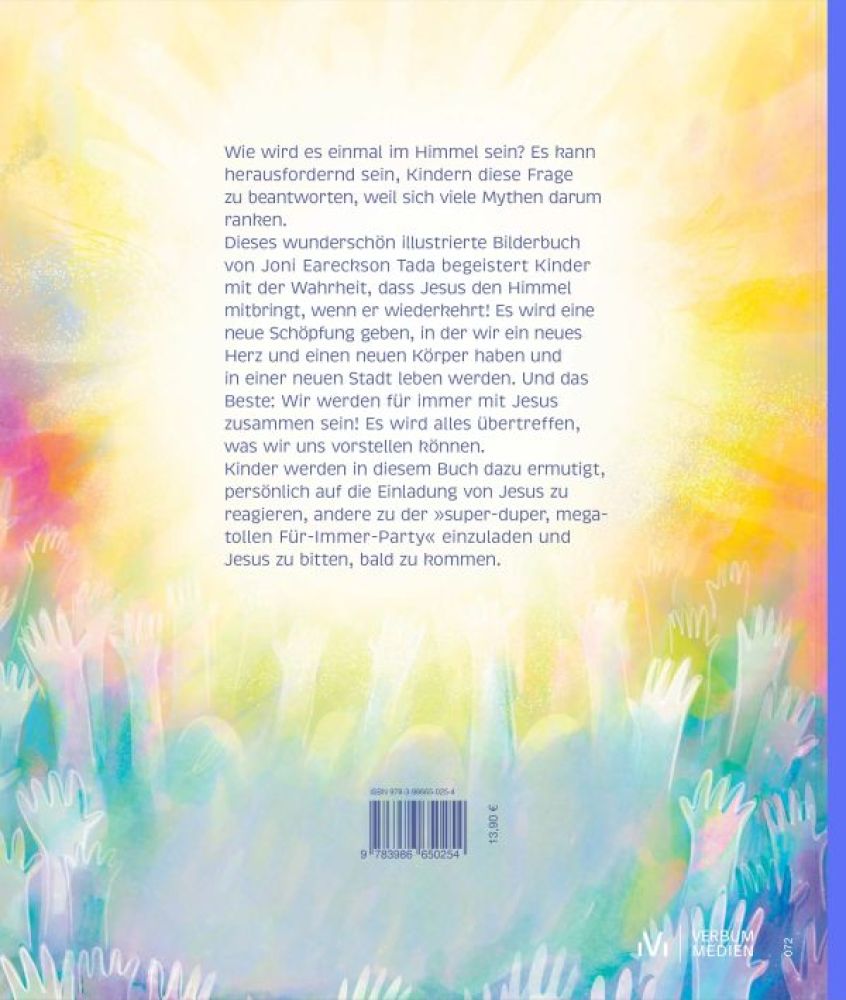 Dieses wunderschön illustrierte Bilderbuch von Joni Eareckson Tada begeistert Kinder mit der Wahrheit, dass Jesus den Himmel mitbringt, wenn er wiederkehrt! Es wird eine neue Schöpfung geben, in der wir ein neues Herz und einen neuen Körper haben und in einer neuen Stadt leben werden. Und das Beste: Wir werden für immer mit Jesus zusammen sein! Es wird alles übertreffen, was wir uns vorstellen können.
