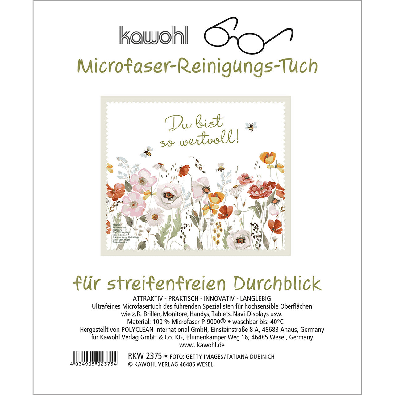 Ultrafeines Microfasertuch des führenden Spezialisten für hochsensible Oberflächen wie z. B. Brillen, Monitore, DigiCams, Handys, Navi-Displays, PDAs usw. mit brillantem Motiv.