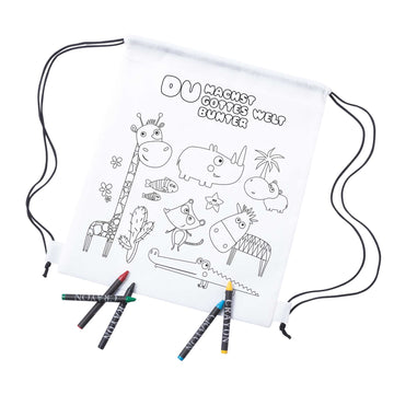 Rucksack für Kinder zum Ausmalen mit 5 Wachsmalstiften.