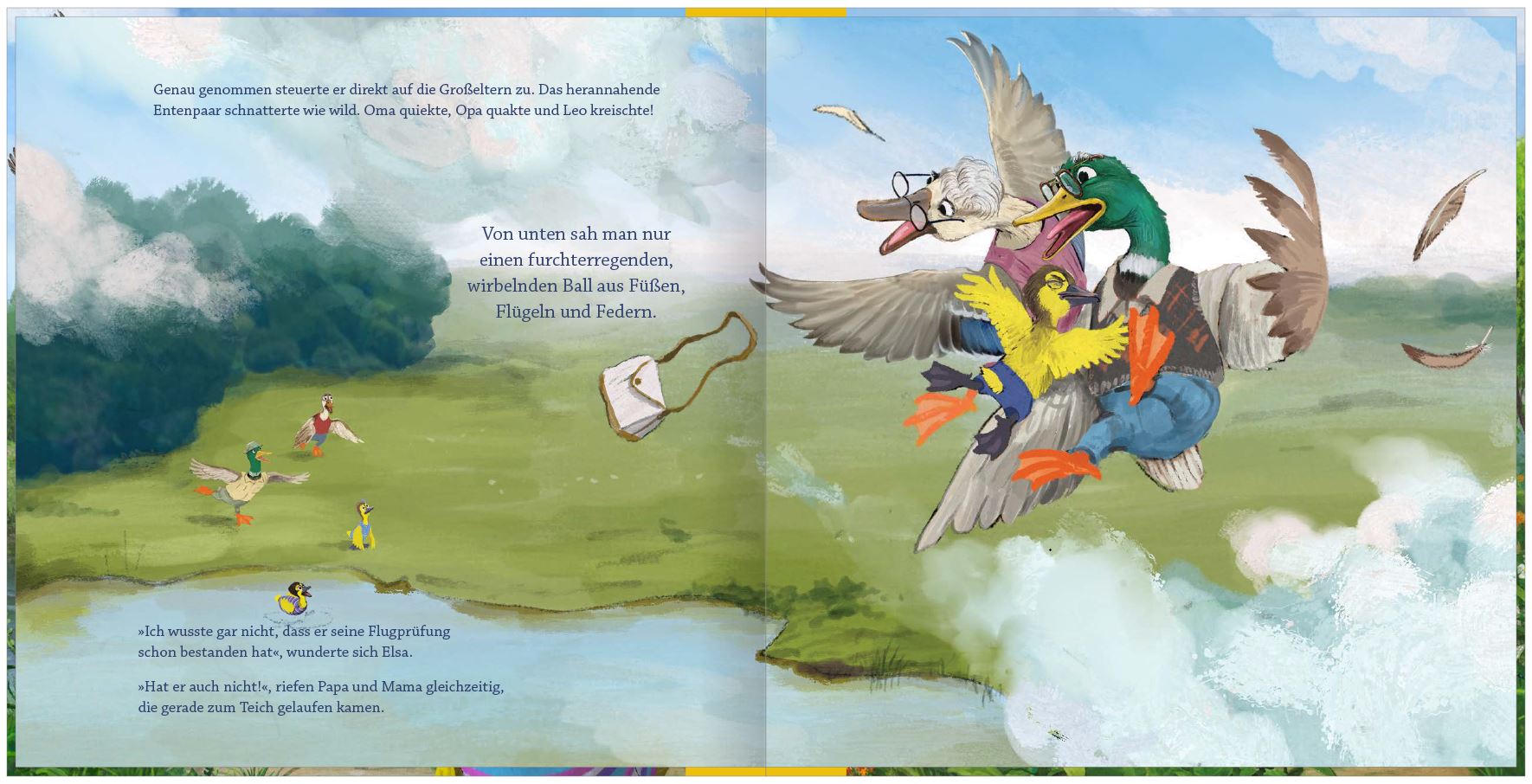 In diesem spannend erzählten und detailreich illustrierten Kinderbuch lernen die Enten-Geschwister, was es bedeutet, den anderen höher zu achten als sich selbst, einander zu unterstützen und um Vergebung zu bitten.