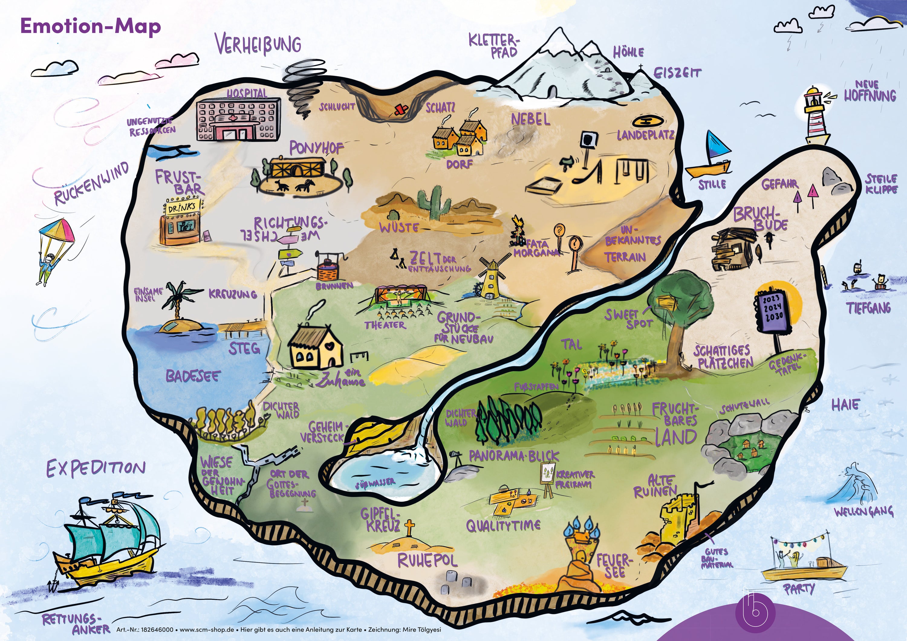 Die Landkarte der Gefühle ist der perfekte Begleiter für Einzelgespräche und Gruppenprozesse. Gefühle und Eindrücke werden hier in Form von Bildern und Begriffen dargestellt. So können Empfindungen leichter benannt werden.