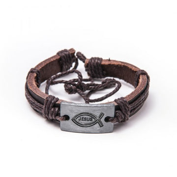 Leder-Armband mit Metallplatte "Fisch/Jesus"