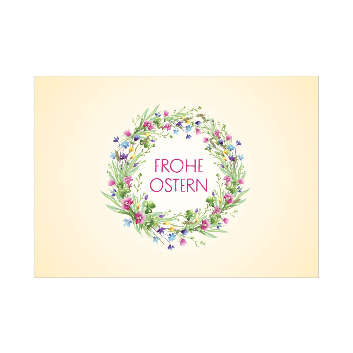 Eine hübsche bunte Karte für Grüße zum Osterfest, zum Verteilen, Versenden oder als Deko im Kartenhalter.