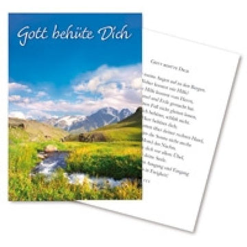 Ich hebe meine Augen auf zu den Bergen.Woher kommt mir Hilfe? Meine Hilfe kommt vom Herrn, der Himmel und Erde gemacht hat. Er wird deinen Fuß nicht gleiten lassen, und der dich behütet, schläft nicht. Siehe, der Hüter Israels schläft und schlummert nicht. Der Herr behütet dichx09 der Herr ist dein Schatten über deiner rechten Hand, dass dich des Tages die Sonne nicht steche noch der Mond des Nachts. Der Herr behüte dich vor allem Übel, er behüte deine Seele. Der Herr behüte deinen Ausgang und Eingang von nun an bis in Ewigkeit! Psalm 121