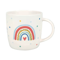 Ideale Größe für Kinder: Tasse aus Porzellan mit schönem buntem Motiv Regenbogen und Text "Gott liebt dich so wie du bist".