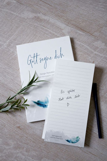 Im Alltag rauschen unzählige Gedanken durch unseren Kopf. "Gott segne dich" bietet eine stilvolle Methode, um Einkäufe, Ideen, Gedanken und Notizen festzuhalten, bevor sie in Vergessenheit geraten. Dieser wunderschön gestaltete Notizblock mit hochwertiger Ausstattung, Naturpapier und Bibelvers ist ein echter Hingucker!