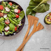 Reinigen Sie das Salatbesteck aus Olivenholz mit lauwarmem Wasser und einem milden Reiniger und trocknen Sie es sofort gründlich ab. Vermeiden Sie Spülmaschine und Einweichen. Pflegen Sie es gelegentlich mit etwas Speiseöl (Olivenöl oder Leinöl) um das Holz geschmeidig zu halten.