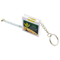 Schlüsselanhänger mit Schlüsselring an einer Edelstahlkette, mit Maßband (1 m Länge) und Mini-Wasserwaage.