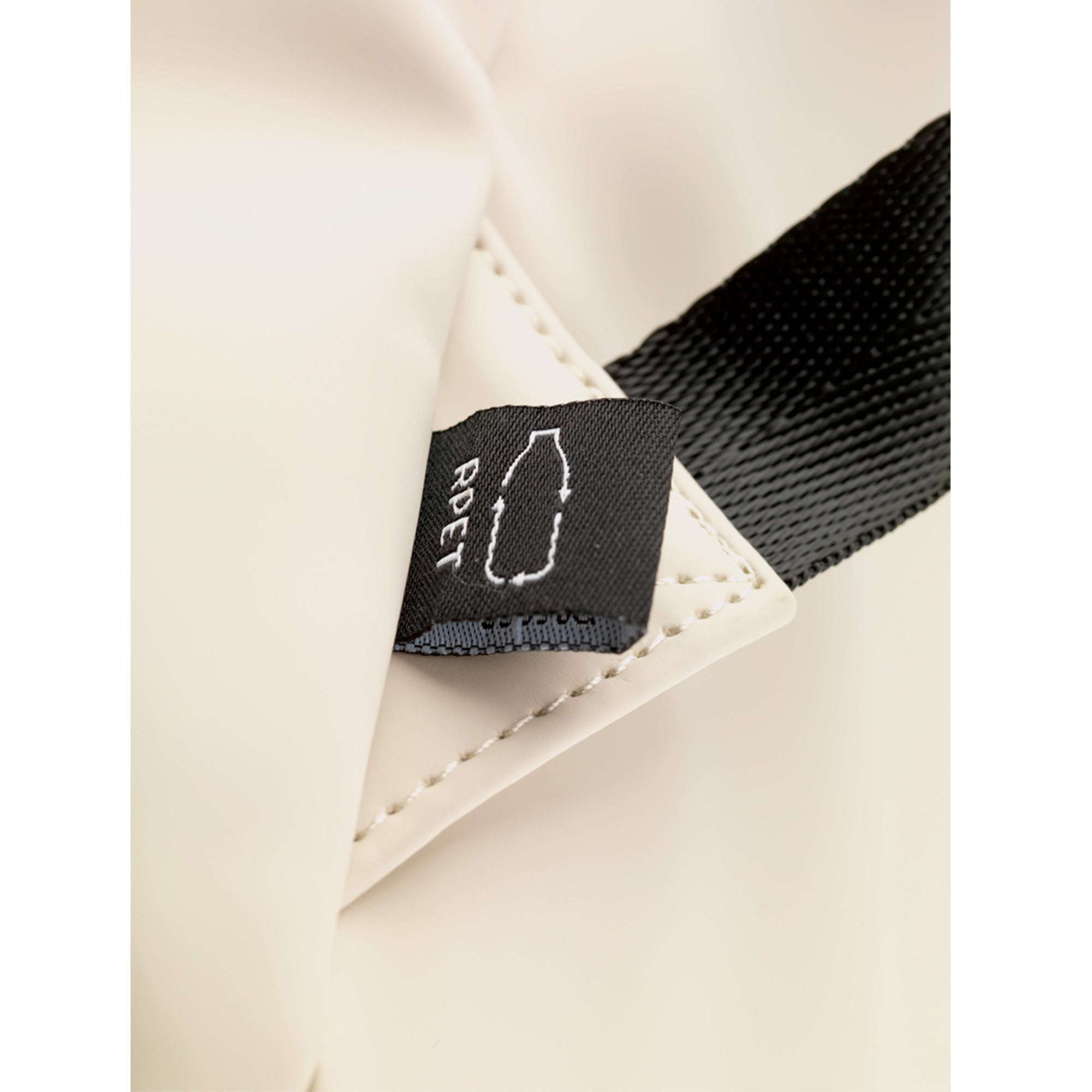 Verschließbar mittels Rollverschluss mit Klettband und Reißverschluss. Ein separates Fach für einen Laptop (bis zu 15,6 Zoll) oder ein Tablet sowie mehrere Einschubfächer für Schreibutensilien sind im großen Innenfach untergebracht. Ein elastisches Band darin hält die Trinkflasche aufrecht an ihrem Platz. Die verstellbaren Schulterriemen sind mit weichem Schaumstoff gepolstert.