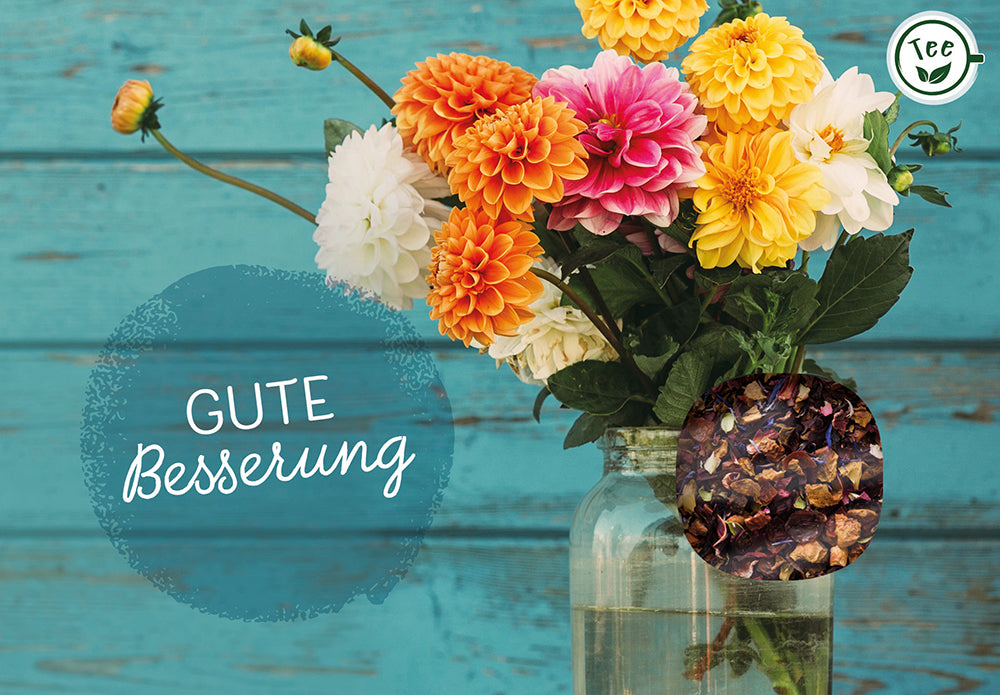 Teekarte mit Sichtfenster, 16,5 x 11,5 cm, gefüllt mit 15 g natürlich aromatisierter Früchteteemischung Vitamingarten