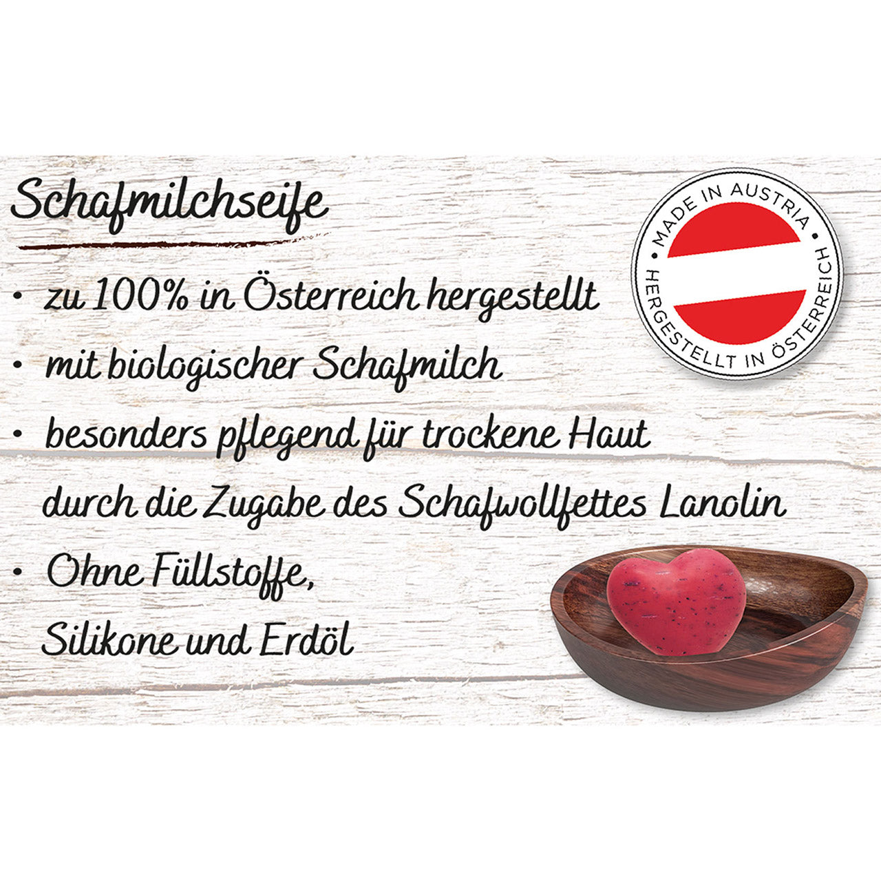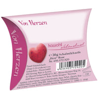 Original Schafmilchseife (30 g) in Herzform umhüllt von guten Gedanken.