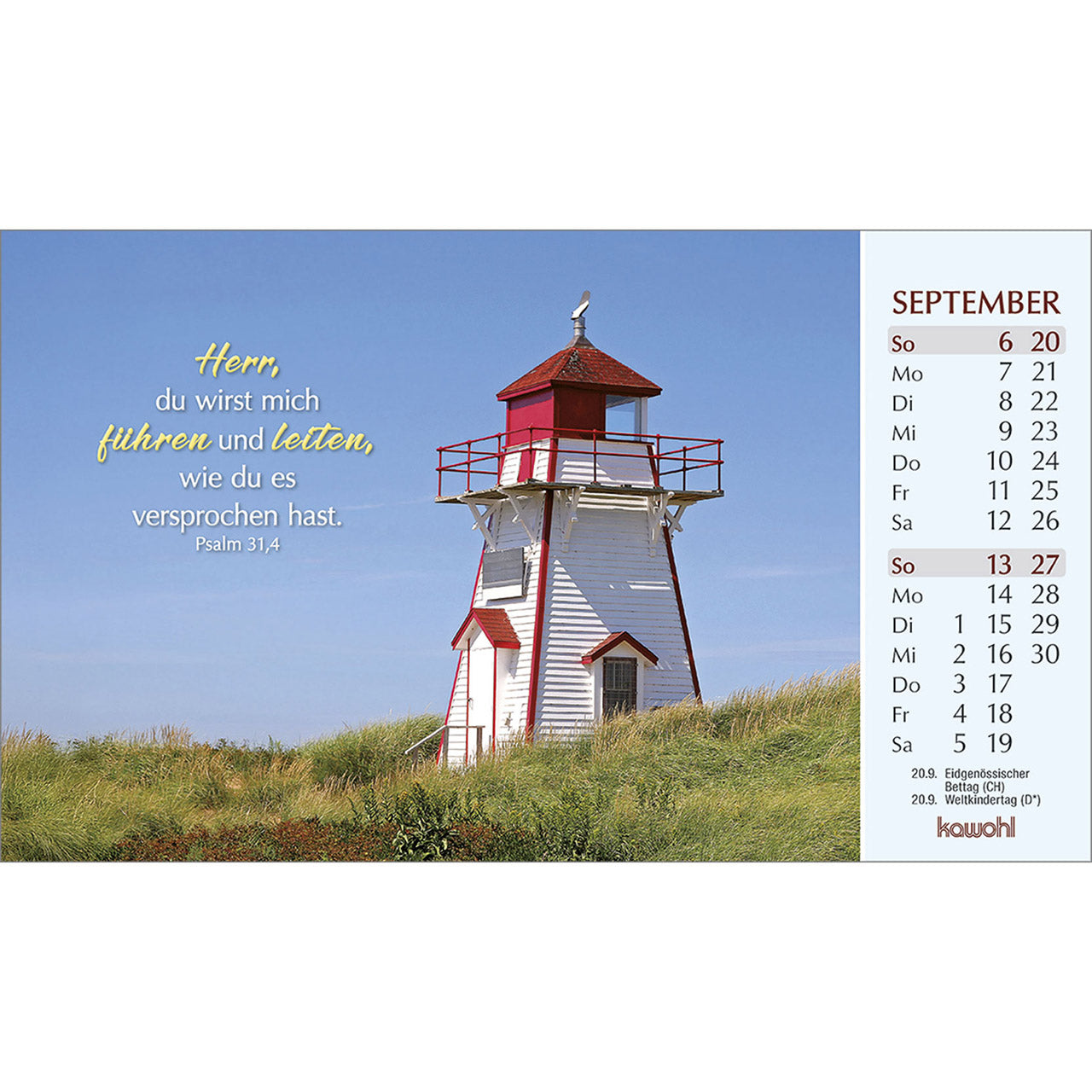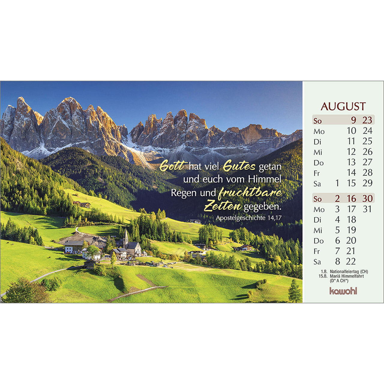 Sonnendurchflutete Stimmungen, meisterhaft fotografiert, und wegweisende, frohmachende Bibelworte geben diesem Kalender seine unverwechselbare, leuchtende Ausstrahlung.