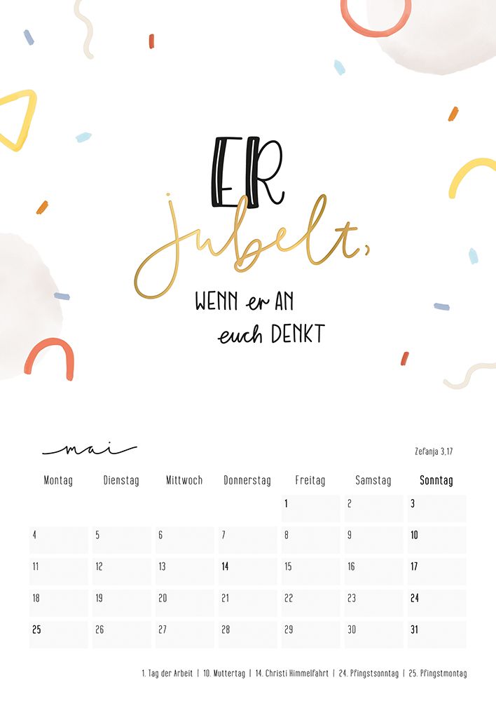Auch für 2026 gibt es wieder den außergewöhnlichen Kalender "Himmelsglück" - ein wunderschönes Geschenk! Jede Seite des Kalenders zieren handgezeichnete Aquarellmotive, kombiniert mit ausgewählten Bibelversen in kunstvollem Handlettering. Die hochwertige Klammerbindung zum Aufhängen verleiht dem Kalender nicht nur Stabilität, sondern auch einen charmanten Look. Verpackt in einer durchsichtigen Folie, bleibt das Design sichtbar und macht neugierig auf den Inhalt. Ideal als liebevolle Aufmerksamkeit für jeden Anlass - dieser Kalender begleitet und ermutigt jeden Tag des Jahres.