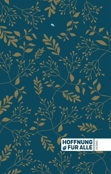 Eine neue Bibel im Großformat: Goldene Blüten und Blätter auf dunkelblauem Hintergrund. Mit dem Text der Hoffnung für alle, der Bibel, die deine Sprache spricht (revidierte Version von 2015, nochmals leicht bearbeitet 2020). Ein Höchstmaß an unmittelbarer Verständlichkeit, lebendig & zuverlässig.