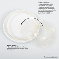 Mit innovativer Befestigung ohne Nadel; kein Piksen und keine Löcher in der Kleidung.