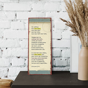 Im Anfang war das Wort, und das Wort war bei Gott, und das Wort war Gott.