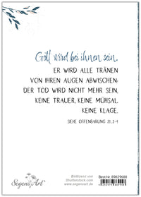 Er wird alle Tränen von ihren Augen abwischen. Der Tod wird nicht mehr sein, keine Trauer, keine Mühsal, keine Klage.