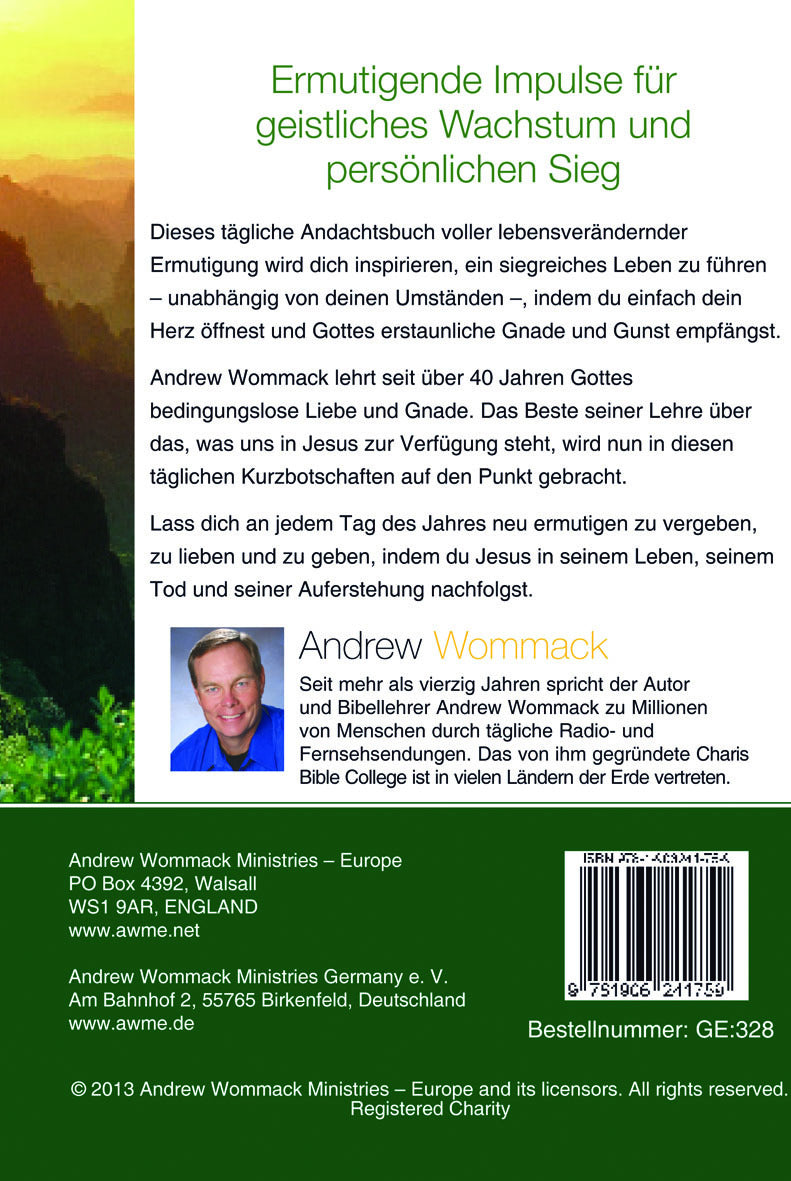 Dieses Andachtsbuch voller lebensverändernder Ermutigung wird dich inspirieren, ein siegreiches Leben zu führen - unabhängig von deinen Umständen -, indem du einfach dein Herz öffnest und Gottes erstaunliche Gnade und Gunst empfängst. Das Beste von Andrew Wommacks Lehre über das, was uns in Jesus zur Verfügung steht, wird nun in diesen täglichen Kurzbotschaften auf den Punkt gebracht.