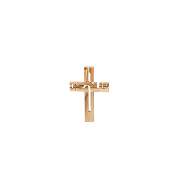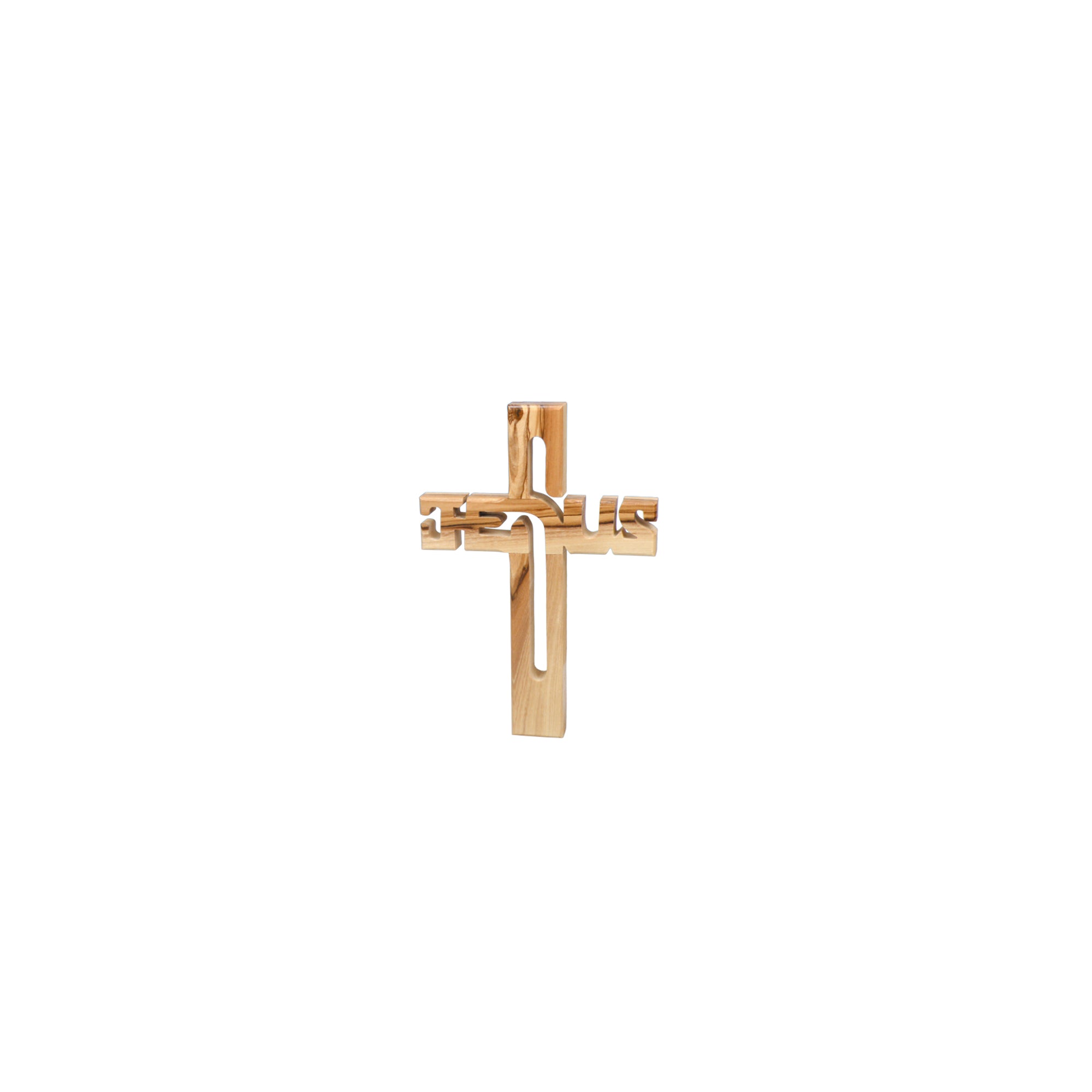 Wunderschönes Kreuz aus Olivenholz in dem der Name "Jesus" steht.