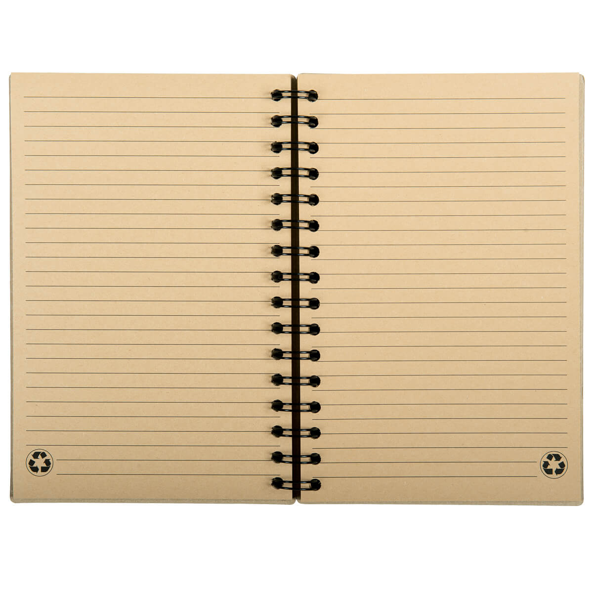 Enthält 80 Blatt mit linierten Seiten aus braunem Recyclingpapier (65 g/qm) und Recycling-Logo auf jeder Seite. Handliches Format für Tasche und Rucksack.