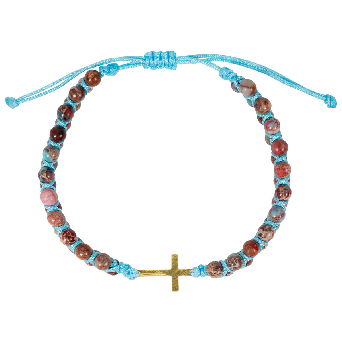 Kreuz - Armband mit Kunststein-Perlen und Kreuz