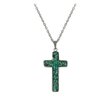 Modische Halskette mit schönem Kreuz aus Edelstahl. Das Kreuz wird durch die eingegossenen türkisfarbenen Kunststeine zu einem besonderen Schmuckstück.