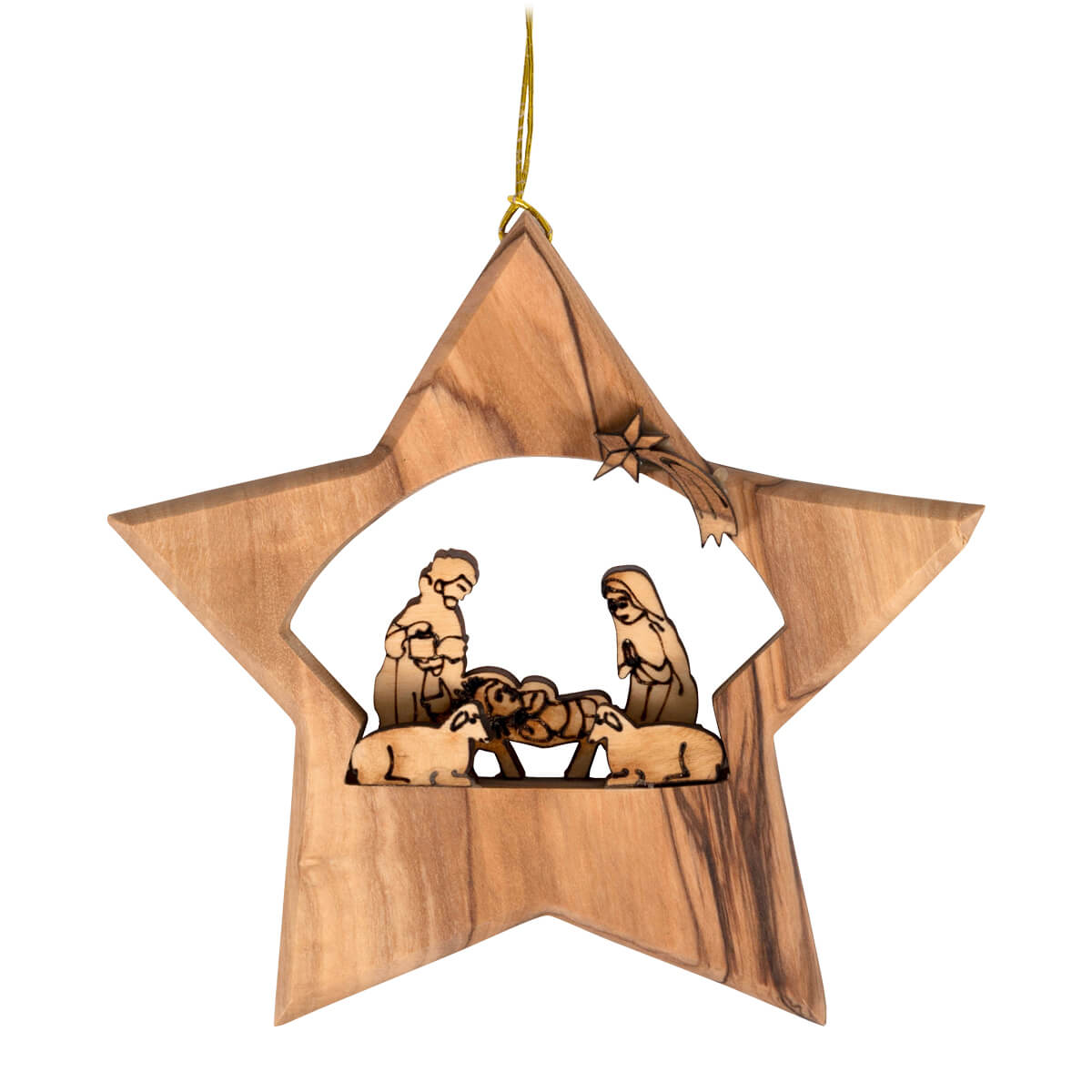 Krippe - Baumschmuck Sternform (Olivenholz)