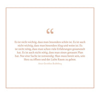Große Gefühle für alle Wochen des Jahres. Bibelverse, Zitate und Gedanken lassen die vielen Facetten der Liebe aufleuchten. Das frische Design und die mit viel Liebe gestalteten Seiten laden zum Träumen ein. Auf den Rückseiten der Blätter sorgen kleine Ideen, spannende Fragen und inspirierende Texte dafür, dass die Romantik auch im Alltag nicht zu kurz kommt.