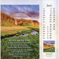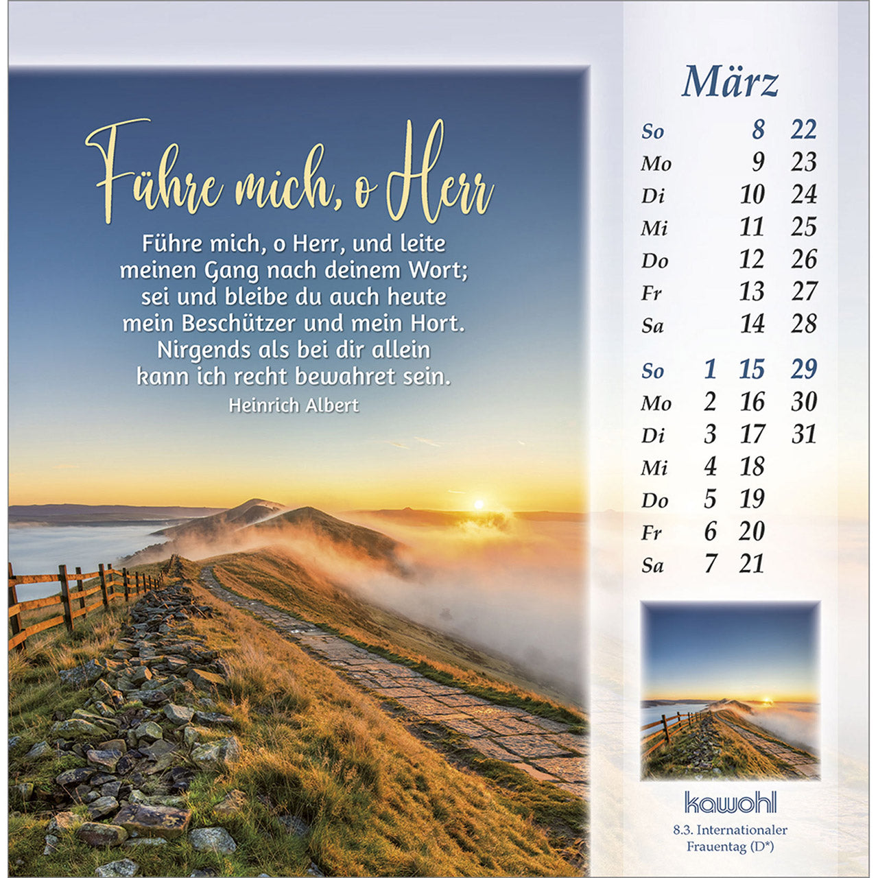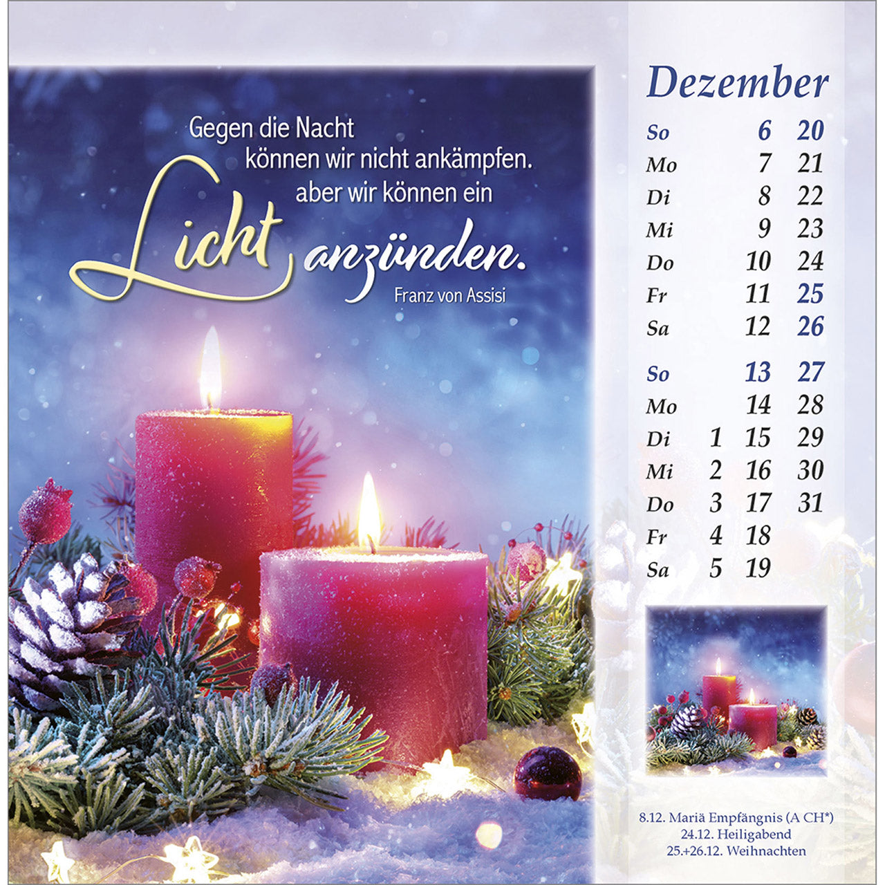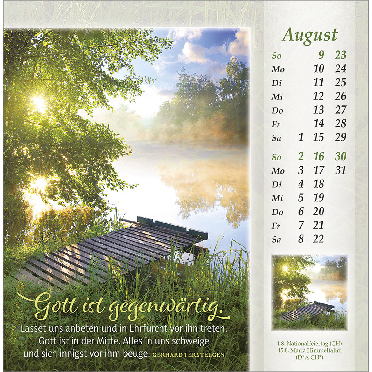 Seit vielen Jahren willkommen ist dieser abwechslungsreiche und doch unverwechselbare Kalender mit aussagestarken Foto-Postkarten. Sorgfältig ausgewählte Texte und hervorragende Bilder sind sein Markenzeichen. Sie möchten zum Staunen anregen über die Wunder, die uns in der Schöpfung begegnen. In ihrer Vielfalt wollen sie den Glauben erlebbar machen.
