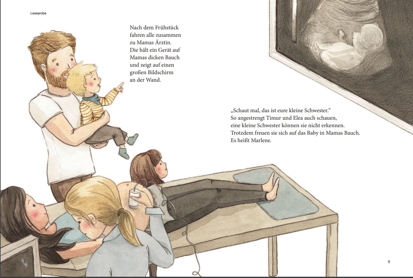 Die vierjährige Elea und ihr zweijähriger Bruder Timur freuen sich auf ihr neues Geschwisterchen. Noch ist ihre kleine Schwester Marlene in Mamas Bauch, der immer größer wird. Doch eines Morgens fahren Mama und Papa ins Krankenhaus. Als sie zurückkommen, haben sie ein ganz kleines Baby mitgebracht, das nicht mehr lebt. Mama und Papa weinen und auch Timur und Elea sind traurig. In Ruhe nehmen sie als Familie Abschied. Später gibt es eine große bunte Abschiedsfeier für Marlene, die ab jetzt wie ihre Oma bei Gott im Himmel wohnt. Alle tröstet der Gedanke, die beiden dort einmal wieder zu sehen. Zu Marlenes erstem Geburtstag macht die ganze Familie ein Picknick auf der Wiese mit Kuchen und Geburtstagslied, denn Marlene bleibt für sie ein Teil ihrer Familie.