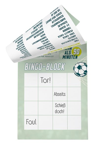 Unser Bingo-Block macht die WM 2026 zu einem interaktiven Highlight. Fans jeden Alters können mitspielen und mitfiebern - ein perfektes Add-on zu unserem WM-Buch mit wertvollen Impulsen, das Familien, Freundesgruppen und Gemeinden gleichermaßen begeistert. So wird die WM 2026 nicht nur ein Spiel, sondern ein gemeinsames Erlebnis.