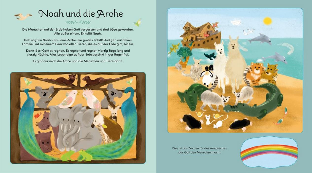 Die Dreh-, Klapp-, Popup- und Ziehelemente sind der ganz besondere Clou dieser liebevoll nacherzählten und farbenfroh illustrierten Kinderbibel.